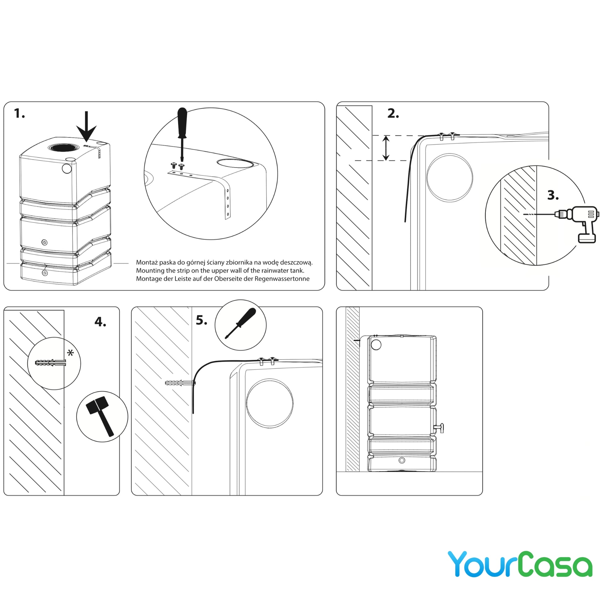 Platzsparendes Design: Die schmale Form (nur 30 cm tief) ermöglicht eine einfache Wandmontage und ist ideal für enge Räume oder Terrassen. Die Regentonne ist speziell dafür konzipiert, direkt an der Hauswand montiert zu werden – für maximale Stabilität und minimale Stellfläche. Im Lieferumfang enthaltene Befestigungsriemen sorgen für zusätzliche Sicherheit und ermöglichen eine stabile Fixierung an der Wand.