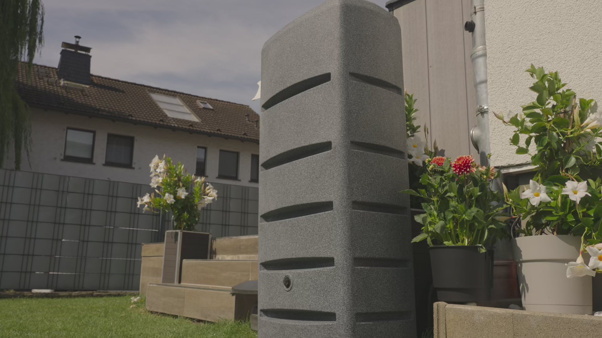 ATOUT DESIGN - Grâce à sa texture, le réservoir de récupération d'eau de pluie s'intègre parfaitement à la façade et apporte une touche esthétique à votre espace extérieur. Son esthétique haut de gamme, dans une finition anthracite sobre, s'inscrit parfaitement dans les tendances architecturales modernes.