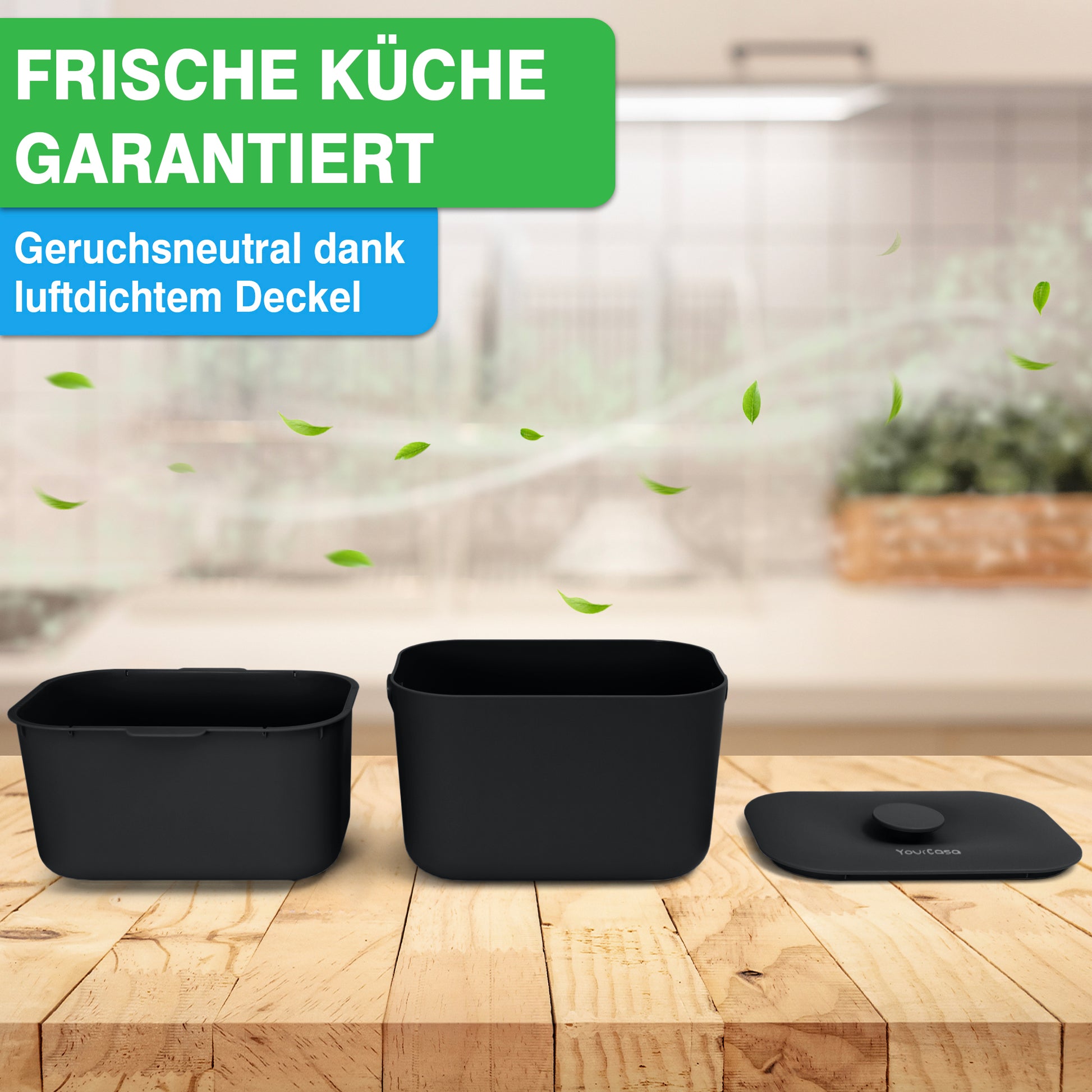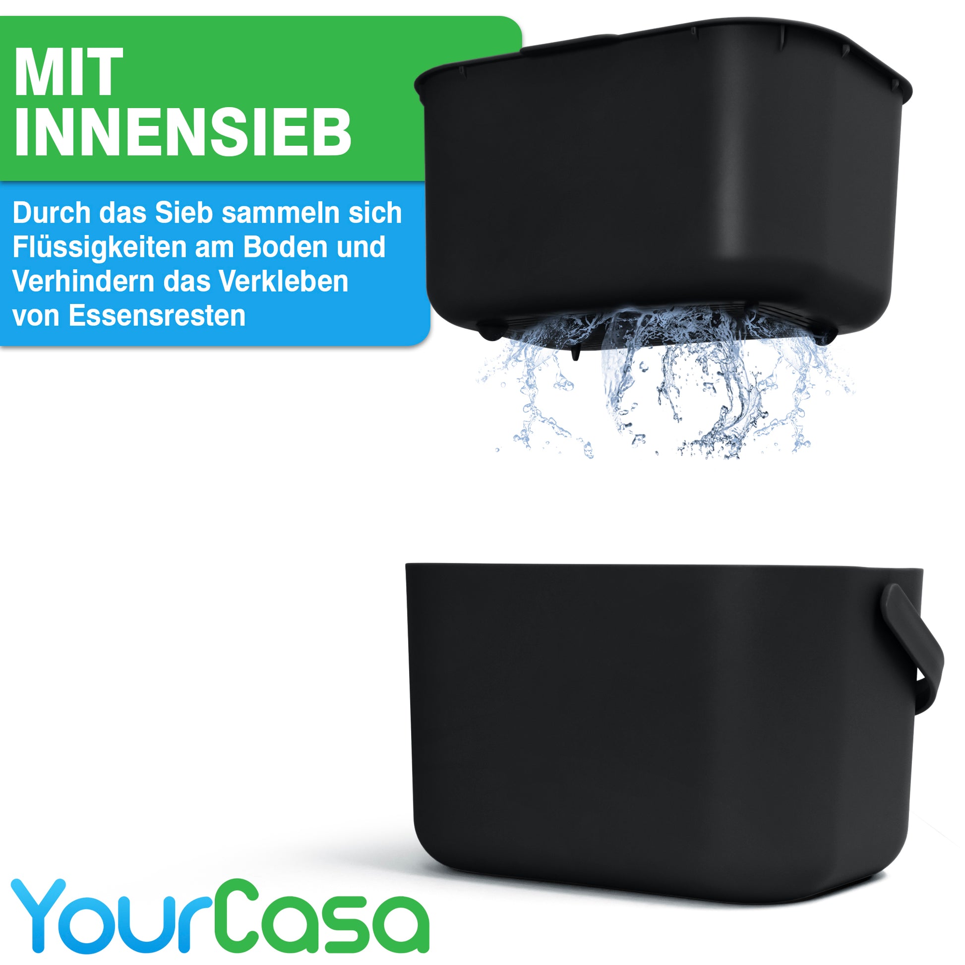 YourCasa® Poubelle à déchets organiques Cuisine Poubelle à compost 4L Cuisine pour le quotidien Conteneur à déchets organiques - Passe au lave-vaisselle - Anti-odeur - Tamis amovible - Petite poubelle à déchets organiques avec couvercle