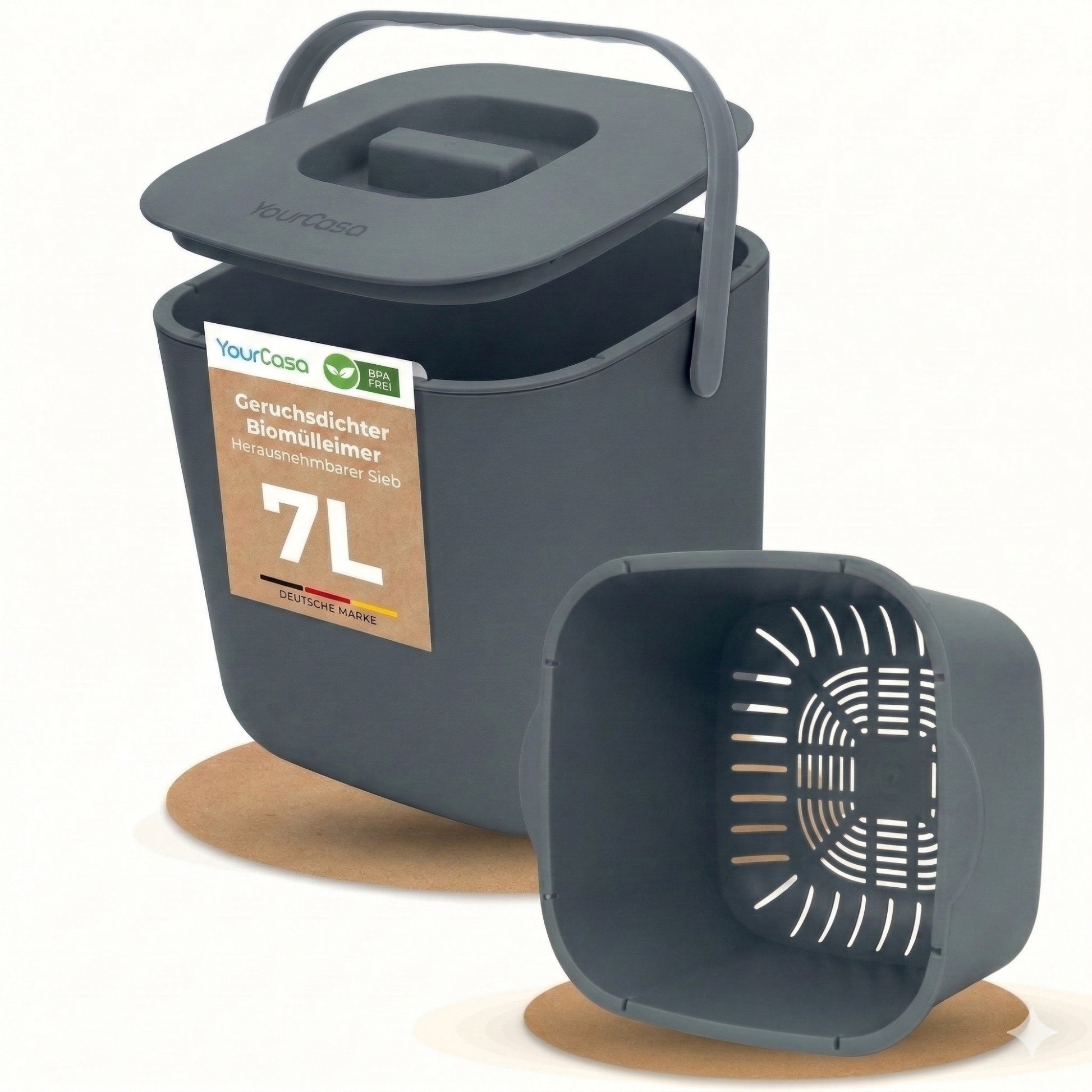 Der YourCasa Biomülleimer 7L unterstützt dich dabei, deinen Haushalt nachhaltiger zu gestalten – ohne zusätzlichen Aufwand, aber mit einem spürbaren Unterschied im Alltag.